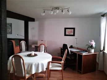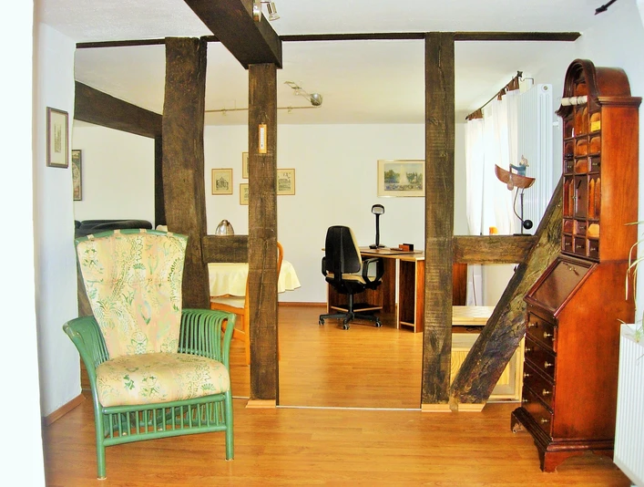 Simply feel good in the listed and renovated half-timbered house.With its spacious living area and open kitchen, the apartment invites you to relax and linger.WiFi is available.The central location offers an optimal connection to public transport.Sights, downtown, ICE train station, town hall are reached in a short time.Shops, banks and doctors can be found in the immediate vicinity.
