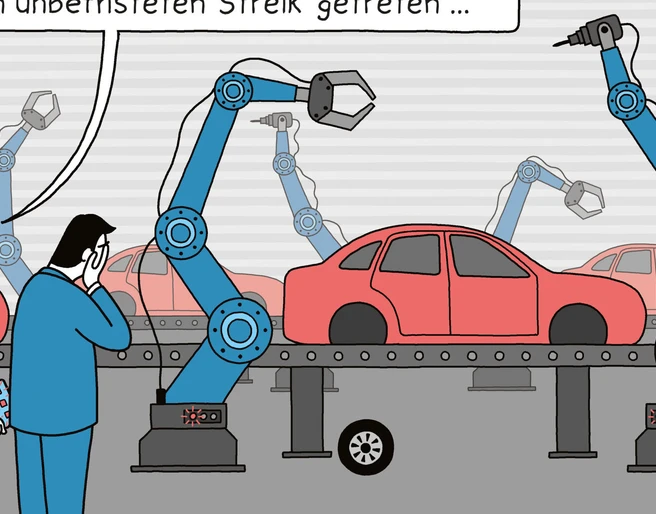 Lawrence Grimm conveys subtle wit with minimalist strokes in small-format avant-garde cartoons. Technoid objects are also part of his repertoire. Yves Noyau's gouache paintings combine delicate technique and grotesque comedy. His ink portraits, on the other hand, are quite "hairy". Ruedi Widmer rounds off the exhibition with classical and political cartoons. In the form of a comic column, he also reveals "The last secrets of a rational world".