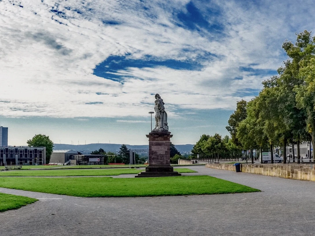 The marble statue of Landgrave Frederick II (regent from 1760 - 1785) stands in the square opposite the Fridericianum Museum. Johann August and Samuel Nahl created it in 1781 - 1783. The monument to the ruler, donated by the Hessian estates, is one of the most important of the century.