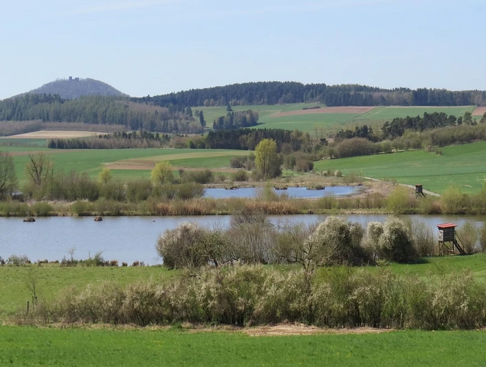 The Glockenborn Nature Reserve is a paradise and an exceptionally worthwhile destination for all nature enthusiasts. Its unique wet meadows, shallow water lakes, and small ponds give rise to a diverse and rare flora and fauna, some of which have become scarce in the Hessen region. Many wildlife and plant experts find delight in the species that have found a home here. The breeding and migratory bird species within the area make Glockenborn one of the most valuable wetland habitats in North Hessen. To maintain the area, a gentle year-round grazing with robust cattle breeds is carried out.