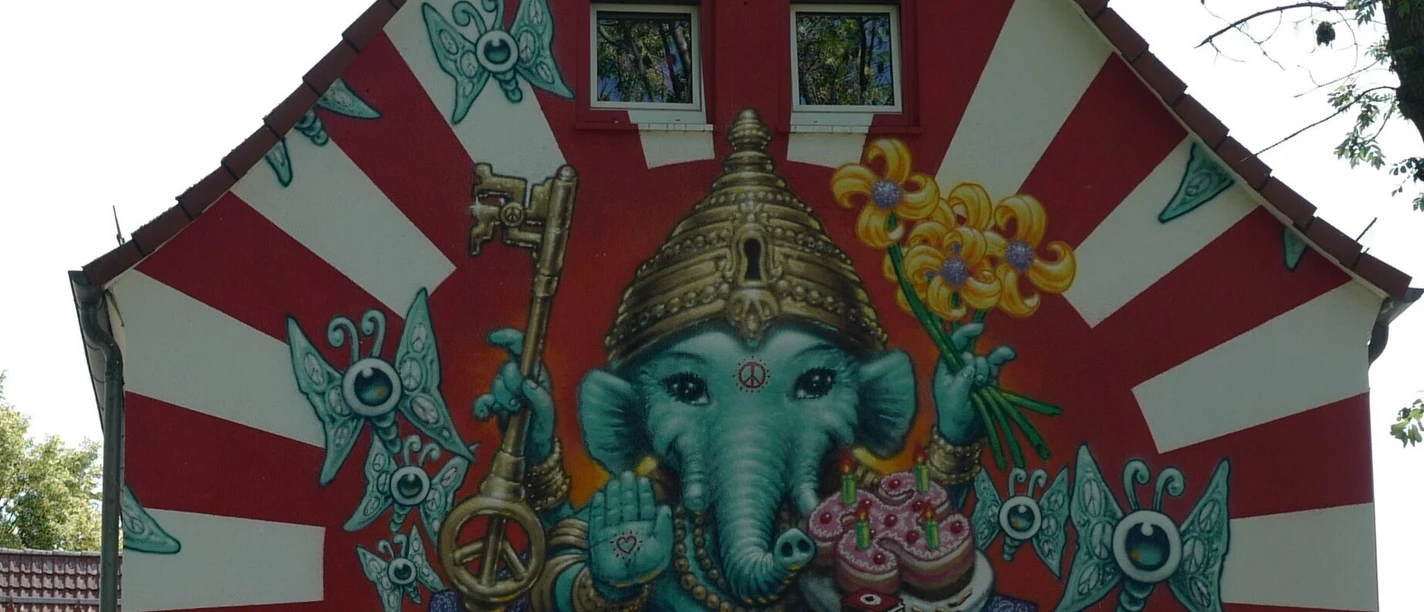 For this purpose, KolorCubes developed the design concept for the design "The Key to Peace" together with the internationally successful Munich graffiti artist WON ABC: The destructive and hateful symbols were to be contrasted with a cosmopolitan and constructive alternative by referring to the original meaning of the swastika - as a Hindu sign for joy, light and life. Thus it becomes a sign of togetherness and plurality.