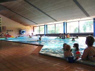 The indoor activity pool features an 8 x 20 m pool with a water depth ranging from 90 to 130 cm. On Wednesdays and Fridays, clubs use half of the pool for training outside the summer holidays. Thursdays are designated as the warm water day. The facility also includes a sauna and an infrared deep heat cabin.