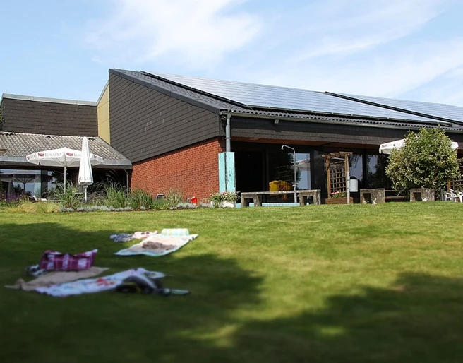 During the summer, visitors have the opportunity to use the sunbathing lawn with play equipment and a sandbox.
