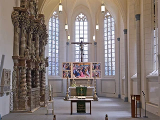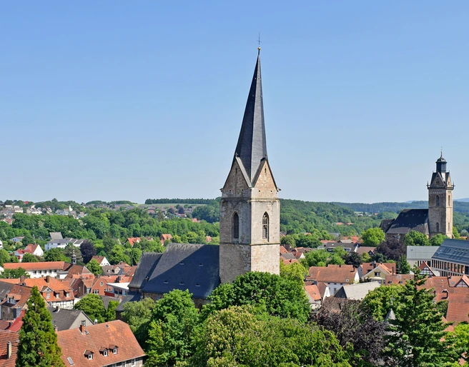 Inside the church, the baroque winged altar by the Korbach Franciscan painter and the tomb of the Waldeck prince Georg-Friedrich (1620 -1692) are impressive.