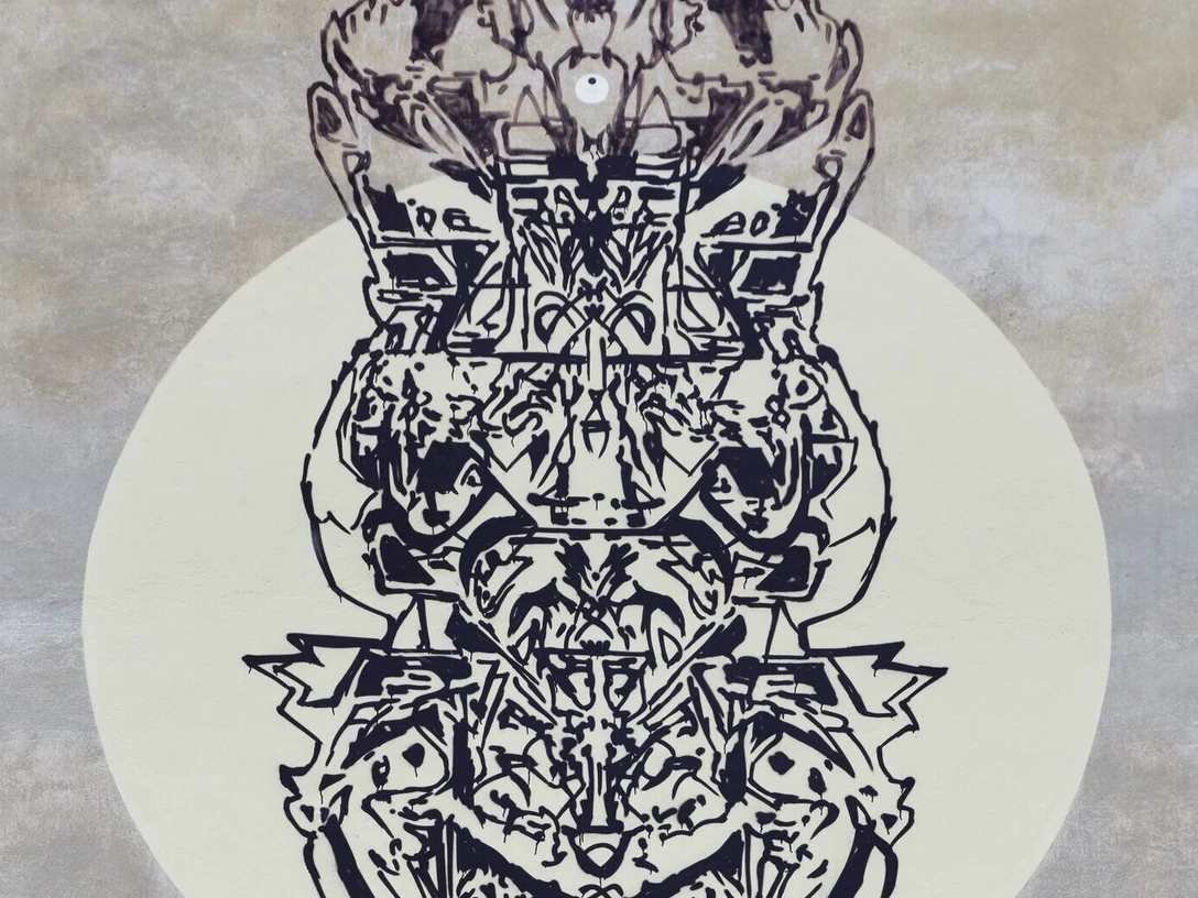 On the south side of the inner courtyard, Iro Universe realised its concept wall "Supreme Mathematics" in 2015. Four geometric shapes in the colours white, beige and black are the variables of an artistic-mathematical equation. They show how multidimensional spaces develop. It begins on the far left with a white circle that stands for one-dimensionality. With each step, features or a dimension are added. At the end, there is a complex structure that unites space and time. The Aztec-style tribal symbolises pluralism in art and culture.