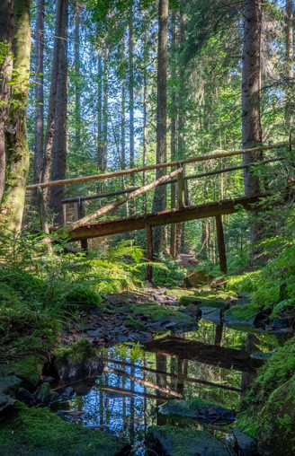 Along meadows and forests, this path offers fascinating views over the Rinne Valley to the Kellerwald, as well as to Knüllköpfchen and Eisenberg, the two highest elevations in the Knüll region. Near Hülsa, depending on the season, you can wander through colorful meadows with wild orchids. When you turn your gaze to the side, a unique panorama unfolds. The highlight of the circular route is the Lochbachklamm, the only one of its kind in North Hesse. The Lochbach gently flows over sandstone, creating an enchanting landscape of ferns beneath the leafy forest canopy. Numerous wooden bridges provide fantastic changes in perspective, while benches invite you to enjoy the tranquility and the sound of trickling water and linger for a while. At Wallenstein, the gorge opens up again to a meadow valley with diverse orchards.