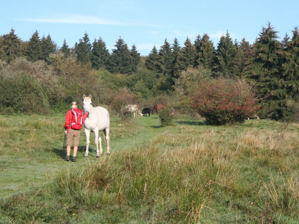 Starting at the market square in the historic half-timbered town of Zierenberg, the Habichtswaldsteig winds its way up and down along a path, taking you through the Dörnberg with its Alpine trail, juniper heaths, the Naturparkzentrum, and the Hohen Dörnberg with its former Chatten settlement. The hike is interspersed with cattle pastures and a juniper heath with Buren goats. You'll reach the Silbersee and pass through beech forests that change colors with the seasons, eventually arriving at the Hute am Herkules. Here, standing below the Herkules monument, the symbol of Kassel, you'll be rewarded with a magnificent panorama of the largest European mountain park and the Kassel Basin.