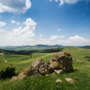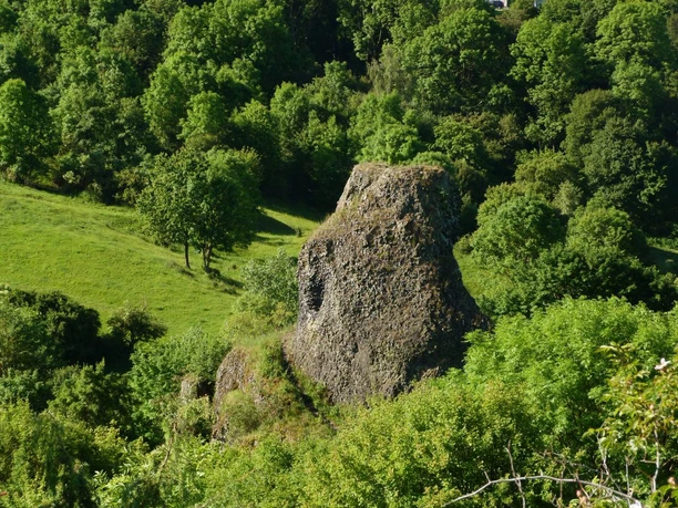 Worn paths wind through an ancient cultural landscape where even the Celts felt at home. The hiker crosses over the "Blue Stones" of the Schreckenberg to the extensive juniper heaths and grazing areas of the Dörnberg. These are sparse dry grasslands where the queens of the plant world, the orchids, thrive. They are meadows where fragrant herbs grow, exuding a touch of the Mediterranean. The hiker strolls through a collection of towering juniper figures that have been spared from the grazing of livestock, shaping the scenery. The path leads from the Helfenstein rocks to the Stone of Immelburg, Friedrichstein, Wichtelkirche, and Blumenstein. These stones are the source of local legends, with their bizarre basaltic column formations being nature sanctuaries for our ancestors and still serving as power spots for many people today. And in autumn, kites soar above this unique landscape.
