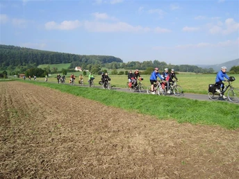 The estimated riding time is around 5 hours, but the tour can also be comfortably completed in multiple stages. There are plenty of sights and attractions along the way, inviting you to explore and enjoy the region. Some notable points of interest include the Märchenwache (Fairy Tale Guard) in Schauenburg, the spa park in Bad Emstal with its rose and herb garden, the fortified church in Balhorn, the ruins of Weidelsburg Castle, and the historic old town of Naumburg.