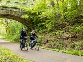 The trail leads through idyllic meadow valleys and wooded areas, under old railroad bridges and offers magnificent views! Without much effort you cycle slightly uphill on the former railroad line and reach the highest point of the cycle path at Olberode station. Along the way are small villages and towns like Neukirchen or Schwalmstadt.