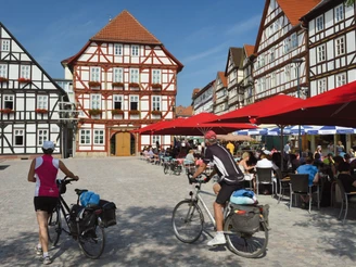 The bike path follows the river from the world-famous Rennsteig, through the varied landscapes of the Thuringian Forest, Thuringian Rhön, Werrabergland, Hainich and Geo-Nature Park Frau-Holle-Land. Many attractive half-timbered towns and tranquil half-timbered villages line the way. Cultural highlights in Thuringia are Eisenach with the UNESCO World Heritage Site Wartburg Castle, Bach's and Luther's Houses, the theater city of Meiningen, Veßra Monastery with the Henneberg State Museum and Creuzburg with its castle complex and Liborius Chapel on the old Werra Bridge. Large salt deposits characterize the region - in addition to the spa towns of Bad Salzungen and Bad Sooden-Allendorf, it is the white mountains near Heringen and the Merkers adventure mine that bear witness to potash mining. Last but not least, the traces of the former inner-German border, which was often located in the middle of the river in the area of the Geo-Nature Park, make the tour an interesting destination.
