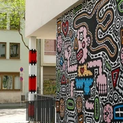 Pünktlich zur Eröffnung der documenta fifteen im Juni 2022 wurde die Wand an der Treppe 4, gemeinsam mit dem Kollektiv Britto Arts Trust aus Dhaka, Bangladesh fertiggestellt. Der Wandgestaltung ging ein intensiver Prozess voraus, der dann in knapp zwei Wochen enger Zusammenarbeit gipfelte.