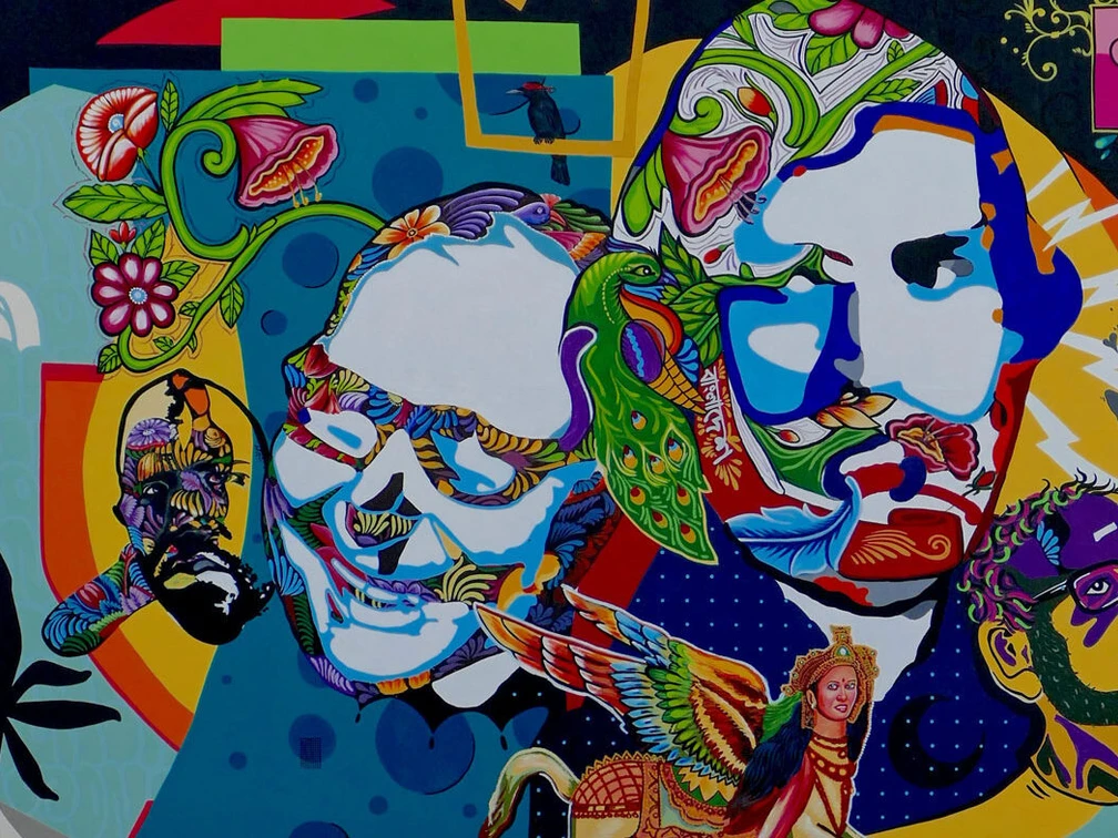 Während des Gespräches haben KolorCubes gemeinsam mit dem Team von Britto Collagen erstellt und kamen überein, dass das Zusammenkommen unterschiedlicher Kulturkreise auch auf der Wand visualisiert werden sollte. Was liegt da näher, als sich Ikonen des jeweiligen Landes auszusuchen?