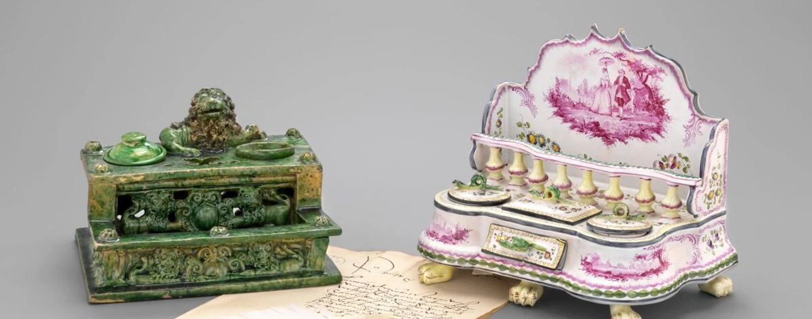 Im Mittelpunkt der Ausstellung zur Geschichte des Schreibens stehen rund 30 historische "Schreibzeuge". Die Präsentation lädt dazu ein, das Schreibzeug als einen zentralen Bestandteil der Kulturgeschichte des Schreibens zu entdecken. Lassen Sie sich überraschen von deren Vielfalt an Formen und Verzierungen. Die Ausstellung widmet sich auch der frühneuzeitlichen Kunst des Federschreibens sowie der Herstellung der Tinte und der Gewinnung von Büttenpapier. Und wissen Sie eigentlich, wie aus einer Gänsefeder ein Schreibgerät wird?